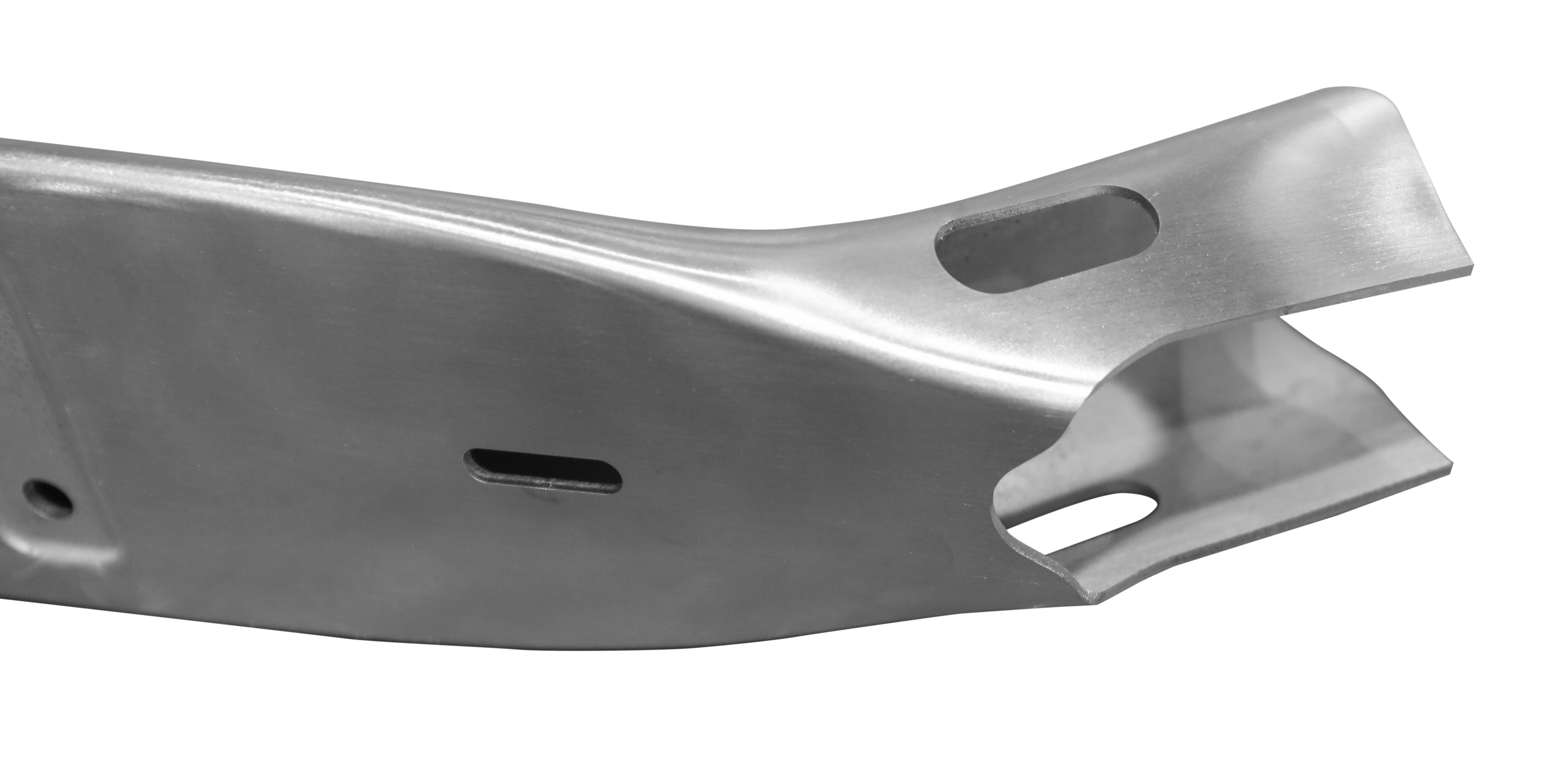 1、高架龍門式、工作臺移動式與懸臂式結構的設計。高架龍門式雙驅結構,主、副支撐立柱的支撐方式;主支撐立柱采用連體式結構,大大提高機床剛性和穩定性,大行程的Z軸滑枕采用鑄鋁結構,提高Z軸加速性能,滿足五個動態軸的慣量匹配,系國內首創,比肩國際先進水平,擁有最大范圍的加工空間和人工接近性,滿足工件尺寸較大的加工需求,壓鑄鋁梁結構能滿足橫梁高動態性能狀態下的穩定性和剛性需求,有效減輕驅動負載。工作臺移動式三維五軸激光切割機,主要是針對汽車、模具行業新車型試制過程中多品種、小批量的零部件進行激光切孔和修邊。懸臂式三維五軸激光切割機主要是對汽車熱成型件進行激光加工,因為熱成型件屈服強度高達1000Mpa,傳統的模具修邊與沖孔難以進行加工或者模具損耗程度很高。