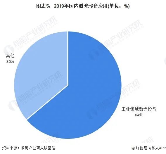 相對于全球激光設備應用領域,國內激光設別應用較為單一與集中,64%的比重應用于工業領域。