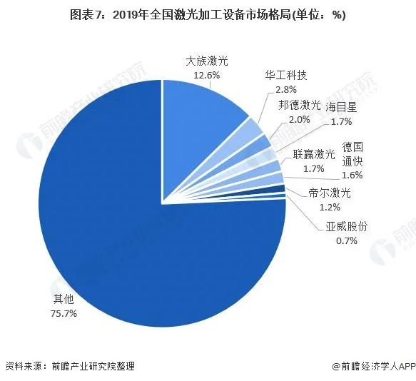 400-666-4000 全國激光加工設(shè)備市場格局較為分散,全國激光加工設(shè)備TOP8占比僅為24.3%,市場集中度較低,排名首位的大族激光市占率也僅為12.6%,但是高于占比排名第二位的華工科技(占有率僅為2.8%)約10個百分比,呈現(xiàn)斷崖式領(lǐng)先。