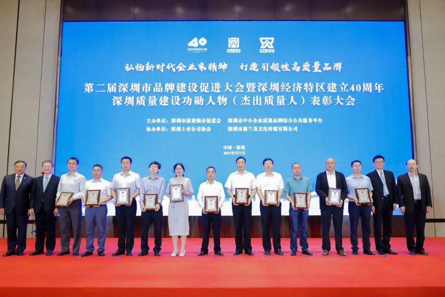 5月7日,在“中國品牌日(5月10日)”來臨之際,第二屆深圳市品牌建設促進大會暨深圳經濟特區建立40周年深圳質量建設功勛人物(杰出質量人)表彰大會在深隆重召開。大族激光智能裝備集團榮獲“深圳品牌百強”稱號,大族激光智能裝備集團全鴻榮獲“杰出質量人”稱號。