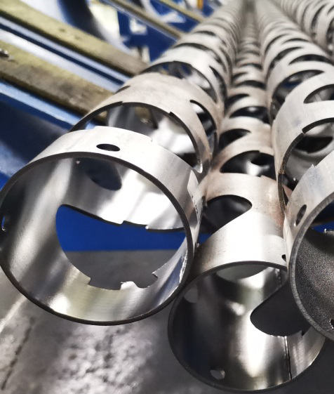 激光切管柔性生產線切割彈架實現切割輪廓緊密貼合、無失真,所見即所得;切割孔徑向、軸向尺寸無差異,加工孔直徑偏差實現嚴格限制,避免彈頭晃動;相位角自動調整補償,實現射孔彈穿孔無偏差;復雜輪廓不抬頭切割,實現高速切割、高效率掉片等重大技術突破。